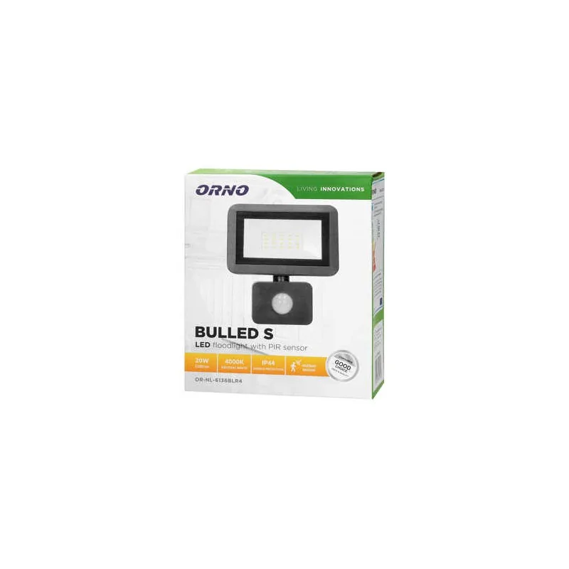 Naświetlacz led z czujnikiem ruchu PIR 20W czarny BULLED S OR-NL-6136BLR4 ORNO
