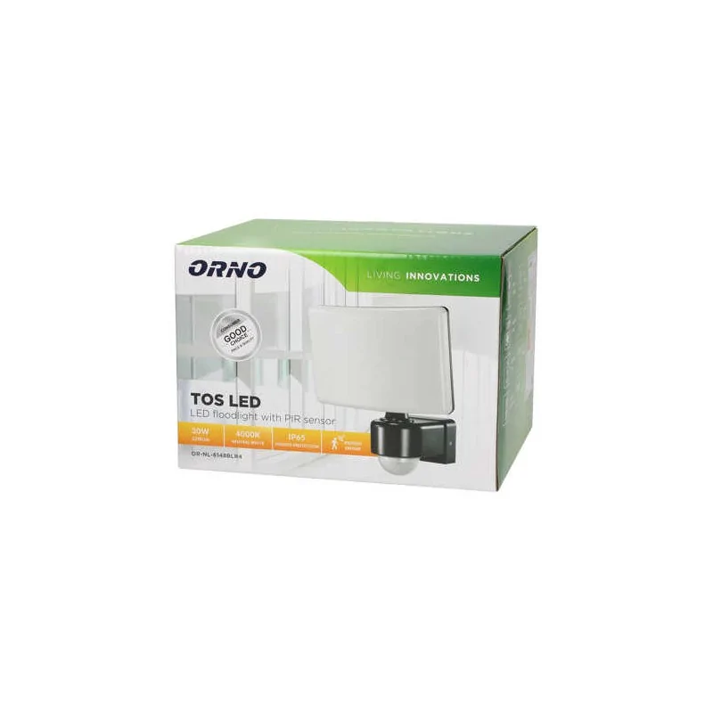 Naświetlacz ogrodowy LED z czujnikiem PIR czarny 30W IP65 2200lm 4000K TOS LED OR-NL-6148BLR4 ORNO