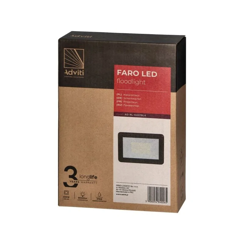 Mocny naświetlacz aluminium + szkło LED 100W 8000lm IP65 4000K FARO AD-NL-6437BL4 ORNO