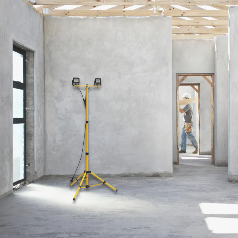 Naświetlacz na statywie BOBBY producenta EKO-LIGHT, to solidne źródło światła, które charakteryzuje się trwałą konstrukcją z aluminium, szkła i metalu. Idealnie sprawdzi się w różnorodnych wnętrzach, od domowych po garaże. Dwa naświetlacze umieszczone na statywie, świecą o mocy 30W LED - każdy, więc będą świetna opcją w halach produkcyjnych, czy w dużych przestrzeniach. Neutralna barwa światła, równa 4000K, jest najbardziej zbliżona do światła dziennego. Natomiast strumień świetlny jest na poziomie 2790 lumenów. Regulowana wysokość statywu może wynosić od 77 do 163 cm. Oświetlenie posiada wbudowane diody LED, które świecą mocnym światłem, jednocześnie zachowują mały pobór energii oraz długą żywotność. Naświetlacze LED, mogą być zamontowane zarówno wewnątrz, jak i na zewnątrz, stopień ochronny to IP44. Produkt objęty gwarancją producenta.
