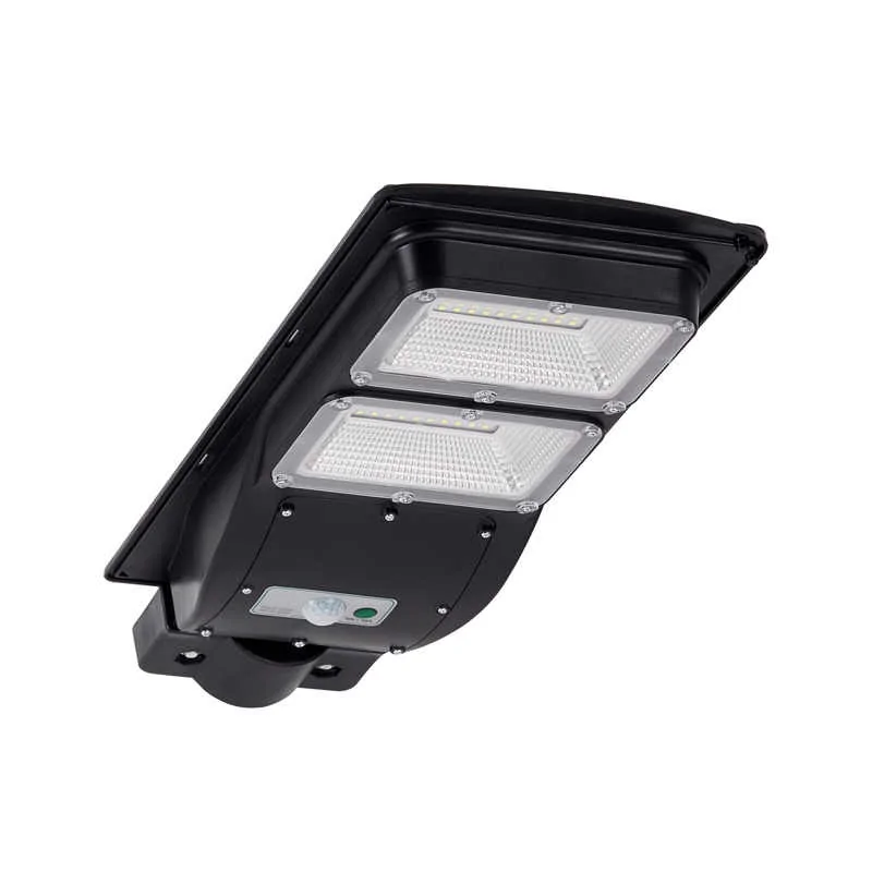 Solarny naświetlacz LED z czujnikiem ruchu i zmierzchu ładowany za pomocą panelu słonecznego działa jedynie dzięki energii słonecznej i nie wymaga zakładania żadnej instalacji elektrycznej. Dzięki podwyższonej klasie szczelności IP65 odporny jest na trudne warunki zewnętrzne. To oświetlenie ogrodowe zapewnia wygodę w codziennym funkcjonowaniu. Prezentowany reflektor z czujnikiem ruchu i zmierzchu wyposażony został w 120 wysokowydajnych diod SMD LED emitujących zimne, białe światło o temperaturze 6000K i o strumieniu świetlnym na poziomie max. 650 lumenów. Wymiary lampy solarnej to 55 x 190 x 470 mm. Duża lampa zasilana energhią słoneczną STREET 6 będzie idealna do oświetlenia miejsc, w których nie ma dostępu do zasilania elektrycznego. Świetnie sprawdzi się przed domem, w ogrodzie, nad garażem czy wokół altanki .Lampa solarna doskonale nadaje się też do oświetlenia: ulic, alejek, chodników, tarasów, ogródków działkowych. Naświetlacz automatycznie włącza lampkę po zmierzchu lub po wykryciu ruchu. Dodatkowo do zestawu dołączony jest pilot zasilany 2 bateriami AAA (brak baterii w pilocie). Sterowanie lampy poprzez dołączony pilot zapewnia wiele możliwości, takich jak między innymi zmianę intensywności oraz czasu świecenia latarni. Zakres obsługi zdalnym pilotem wynosi do 5 metrów. Po pełnym naładowaniu produkt może świecić do 10h.