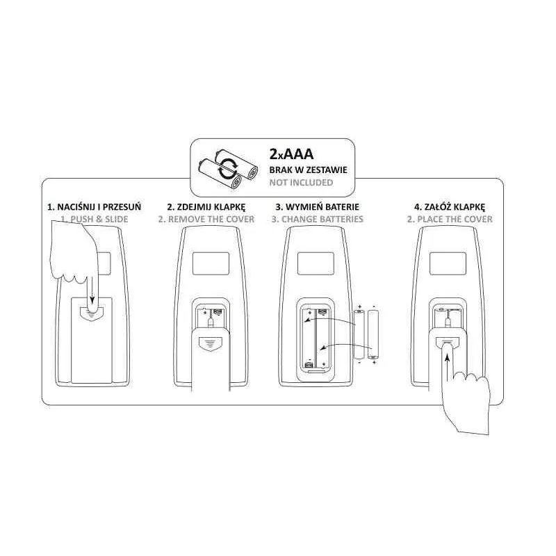 - brak baterii w pilocie ( 2xAAA)