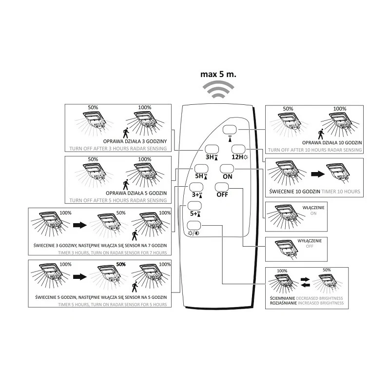 Naświetlacz LED z czujnikiem ruchu i zmierzchu z pilotem