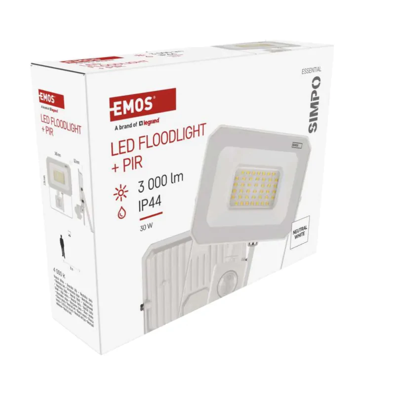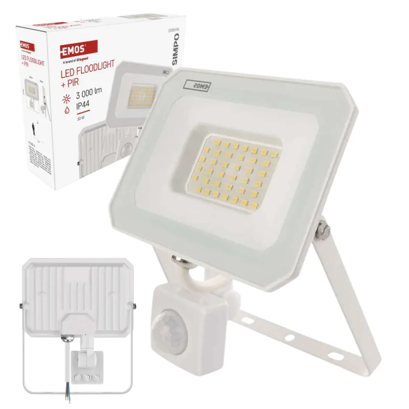 Lampa zewnętrzna Naświetlacz LED przed dom biały 30W z czujnikiem ruchu SIMPO ZS2333W EMOS