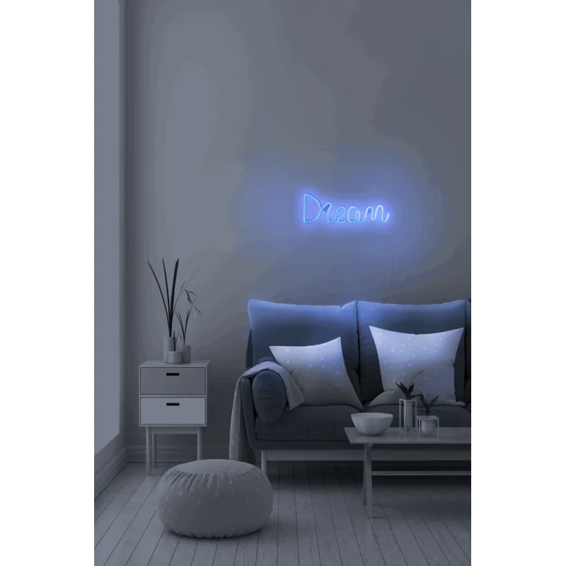 Dekoracyjna neonowa lampka led marki POLUX-GOLDLUX w postaci napisu ''dream'' to świetna ozdoba np. do sypialni czy salonu. Neon LED świeci niebieskim światłem. Świecąca neonowa dekoracja led zasilana jest trzema bateriami AA (brak w zestawie) oraz poprzez USB typu A. Produkt oddaje światło z mocą 3W i posiada wyłącznik on/off przy zasilaniu bateryjnym. Wymiary lampki neonowej led to 40x1,5x13 cm. Stopień szczelności neonowej ozdoby to IP20.