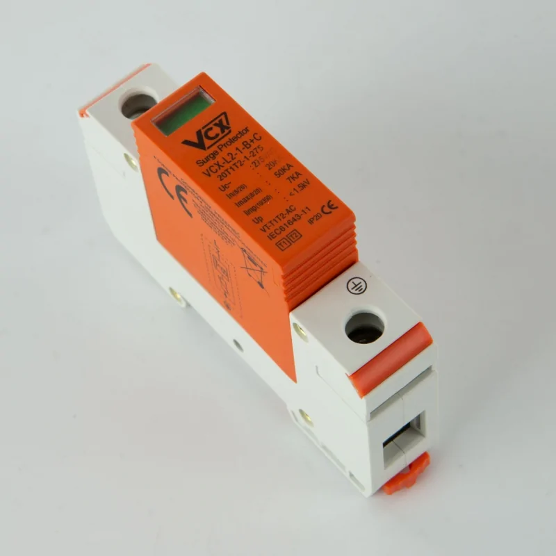 Ogranicznik przepięć firmy VCX montowany na szynę TH35, przeznaczony jest do ochrony sieci niskiego napięcia przed następstwami przepięć, spowodowanych na przykład wyładowaniami atmosferycznymi. Wyłącznik przepięciowy zapewnia kompletną ochronę instalacji jak i urządzeń do niej podłączonych. Ogranicznik przepięć b c posiada wszystkie niezbędne certyfikaty dopuszczające do użytku.