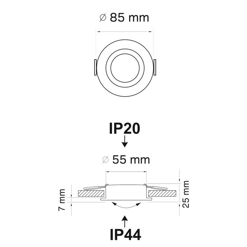 Sufitowe oczko podtynkowe NEPTUN firmy POLUX to eleganckie oświetlenie, które znajdzie szerokie zastosowanie w kuchni, łazience, salonie, sypialni i wielu innych pomieszczeniach. Stała oprawa punktowa przystosowana jest do źródła światła z gwintem GU10 lub żarówek halogenowych MR16. Oprawa nie posiada funkcji regulacji kierunku światła Kolor oczka halogenowego to uniwersalna biel. Wymiary oświetlenia do sufitu podwieszanego to 85x85x25mm, a wymiar otworu montażowego to 55 mm. Produkt nie zawiera oprawek do żarówek! Model dostępny również w czarnej wersji