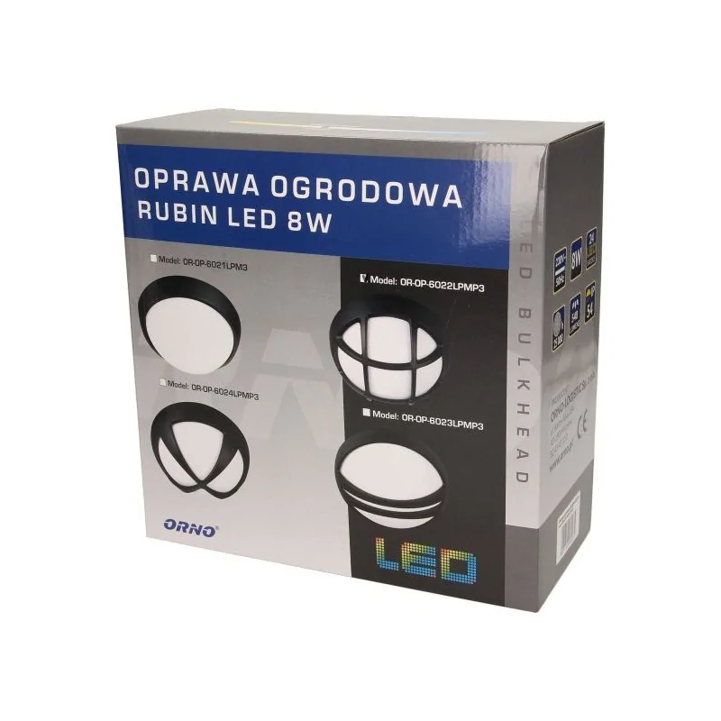 OR-OP-6022LPMP3 Okrągła lampa ogrodowa LED 8W z ciepłym światłem 3000K IP54 z ozdobną czarną kratką RUBIN LED ORNO