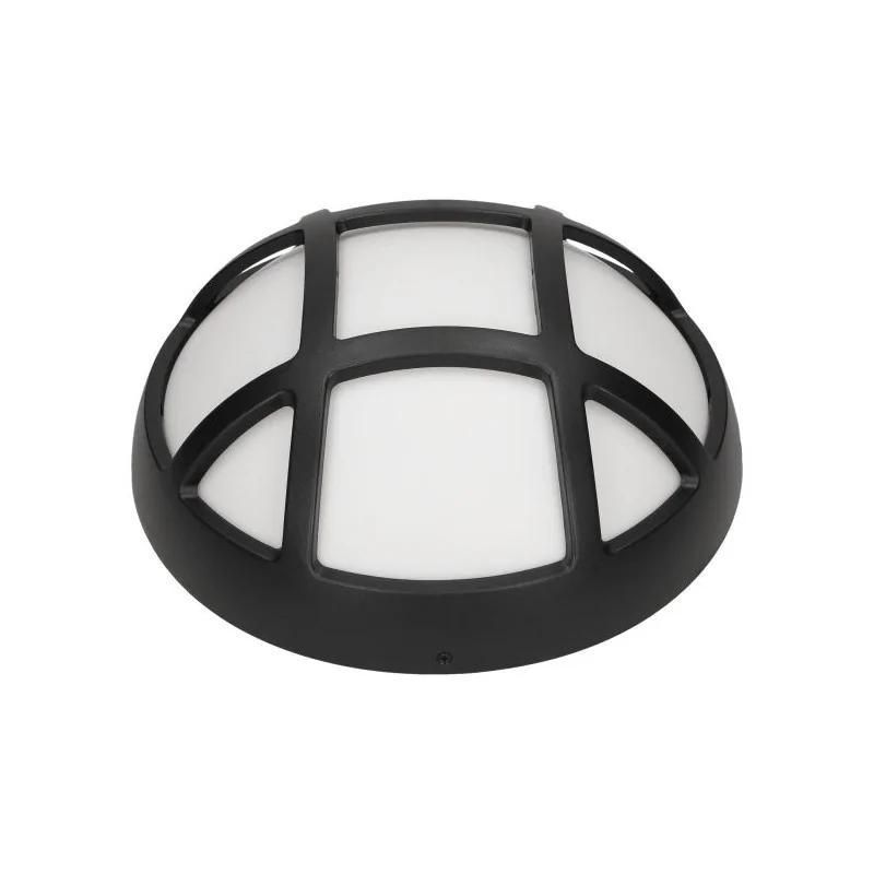 Lampa ogrodowa RUBIN LED marki ORNO w czarnej obudowie, wyposażona została w dekoracyjną kratkę na kloszu. Produkt charakteryzuje się wysoką jakością w niskiej cenie, co jest jej atutem. Okrągła lampa LED idealnie sprawdzi się w piwnicach, garażach, ale również jako oświetlenie na zewnątrz budynków. Ze względu na wysoki stopień odporności IP54 ogrodowa lampa led odporna jest na wnikanie pyłu i wilgoci. Produkt działa z mocą 8W i emituje przyjemnym ciepłym światłem o temperaturze barwowej 3000K i strumieniem świetlnym równym 540 lumenów. Wymiary czarnego plafonu led na zewnątrz to: wysokość- 110mm, średnica- 260mm.