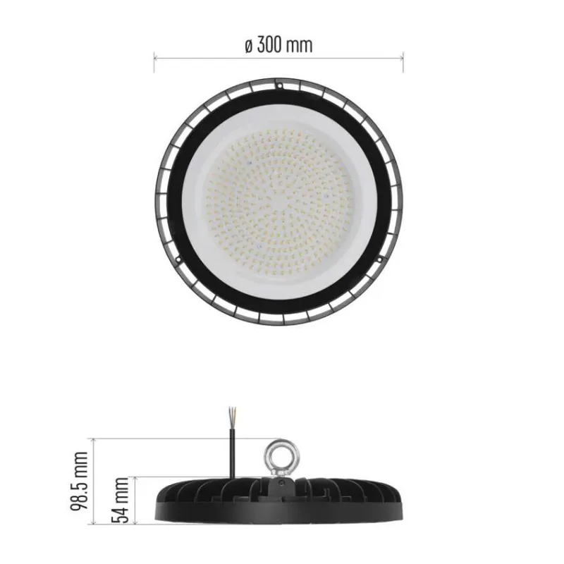 Oświetlenie przemysłowe ZU225 HIGHBAY producenta EMOS, posiada możliwość zamontowania na haku, dzięki czemu oprawę umieścimy niemal na każdej przestrzeni. Została wykonana z myślą o halach przemysłowych, warsztatach, tak gdzie jest podwyższona wilgoć i trudne warunki zewnętrzna, stopień ochronny wynosi IP65. Wbudowane diody LED - w porównaniu do tradycyjnych żarówek żarowych - są energooszczędne. Lampa hermetyczna świeci o mocy 225W, neutralną barwą światła równą 4000K, która jest najbardziej zbliżona do światła dziennego. Strumień świetlny jest na poziomie 27000 lumenów. Oprawa w czarnej hermetycznej oprawie jest o średnicy 30cm i wysokości 5,4cm. Seria HIGHBAY składa się z wielu lamp o równych mocach i rozmiarach. Produkt objęty gwarancją producenta.