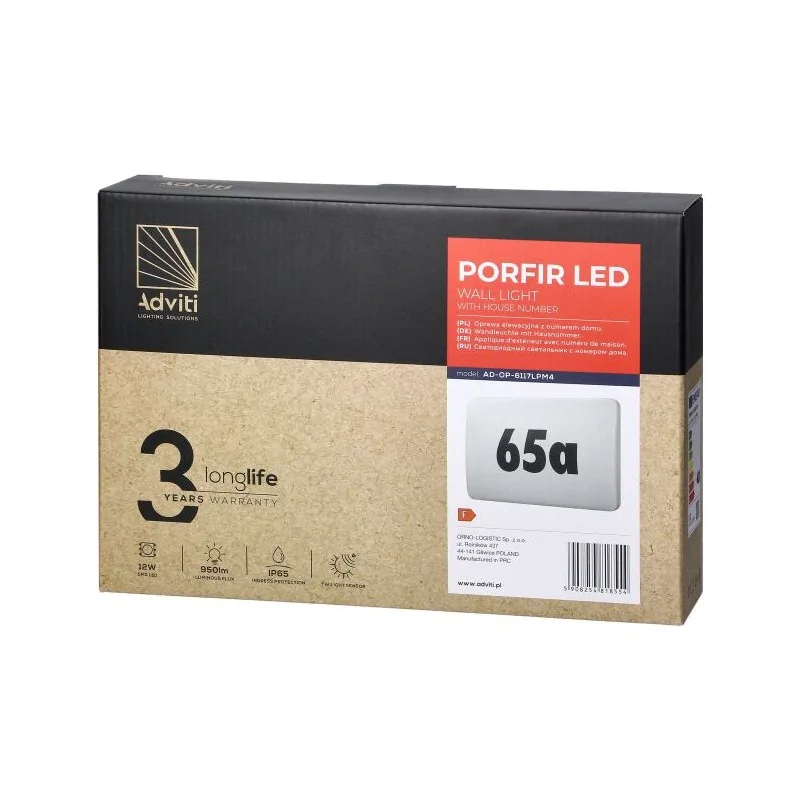 Lampa z numerem domu + czujnik ruchu LED 12W IP65 4000K PORFIR AD-OP-6117LPM4 ORNO