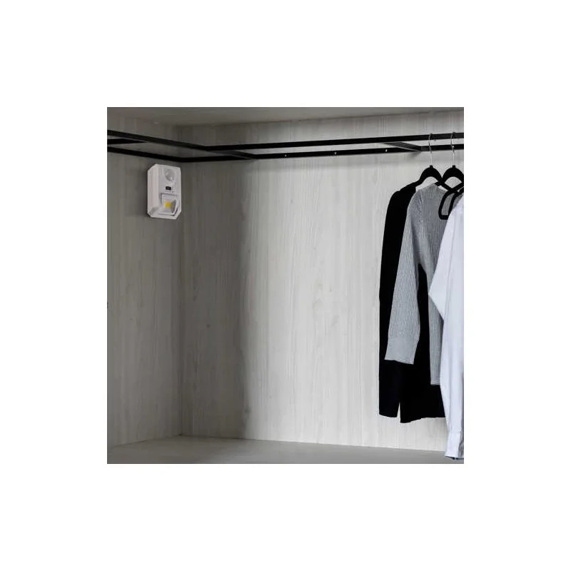 Lampka podświetlająca LED marki Sanico to dekoracyjne oświetlenie, które idealnie nada się jako podświetlenie mebli. Lampka jest ruchoma i świetnie spisze się np. w szafie. Dodatkowo produkt wyposażony został w czujnik PIR (odległość czujnika 5m). Lampka meblowa w kolorze białym posiada również wyłącznik on/off i jest o wymiarach 6,5x4,5x8,5 cm. Lampka podświetlająca led z czujnikiem oddaje neutralne światło o temperaturze barwowej 4500K oraz strumieniu świetlnym równym 40 lumenów.