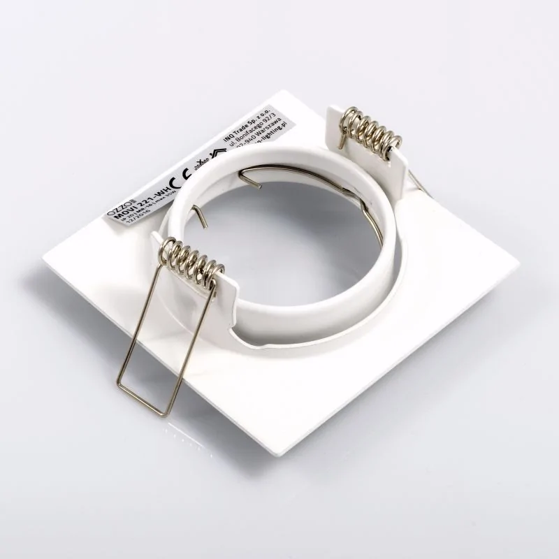 Oprawa sufitowa marki OZZO, to pierścień ozdobny w kolorze białym. Będzie stanowił nowoczesny i designerski element w mieszkaniu. Oprawa halogenowa doskonale sprawdzi się zarówno w kuchni, korytarzu i salonie. Dzięki regulowanej konstrukcji nakierujemy strumień światła w wybranym kierunku czy na dowolny objekt podświetlenia. Oprawa jest kwadratowa, wykonana ze stali z wielką starannością i dbałością o szczegół. Jest rozwiązaniem dla oświetlenia o uniwersalnym wyglądzie. Oprawa przeznaczona jest do montażu sufitowego do otworu - 68mm. Pierścień ozdobny nie zawiera w komplecie gniazda i źródła światła. Źródło światła: max 35W. Świetna jako oczko sufitowe w suficie podwieszanym.