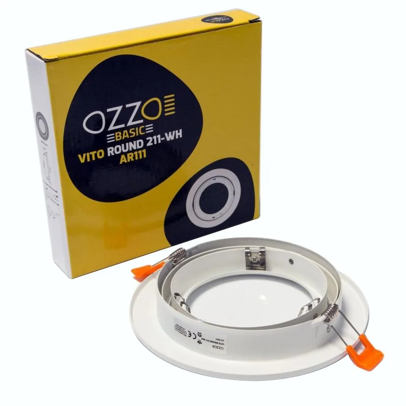 Okrągła oprawa sufitowa halogenowa VITO ROUND 211-WH AR111 OZZO jest w kolorze białym,który idealnie pasuje do każdego pomieszczenia. Oprawa sufitowa działa z maksymalną mocą 50W i jest przystosowana do źródła światła AR111. Oprawa posiada ruchomą konstrukcję, więc promień światło możesz ustawić w wybranym przez siebie kierunku. Oprawa oświetleniowa posiada trzonek GU10/GZ10. Biała oprawa sufitowa halogenowa firmy OZZO ma średnicę otworu równą 176 mm i nie posiada źródła światła w zestawie.
