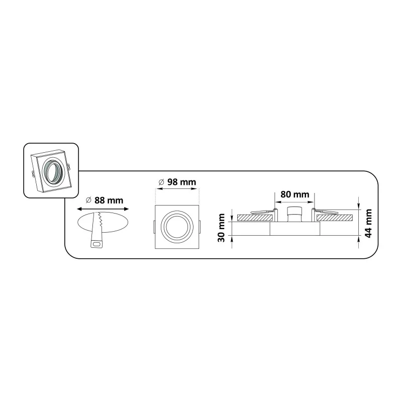 - Wymiar produktu: 98 x 98 x 30-44 mm