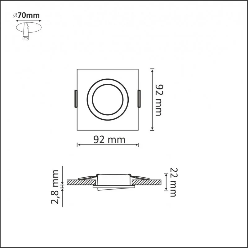 - wymiar produktu: 92 x92 x 22 mm
