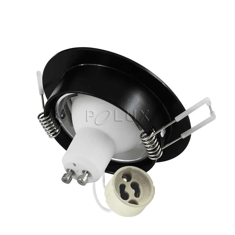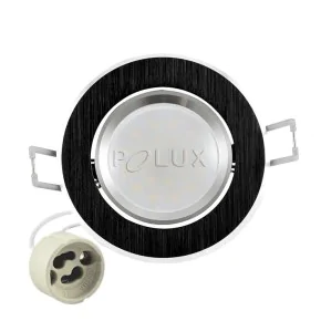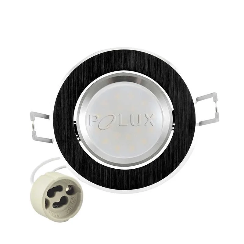 Sufitowa oprawa SUN OLAL LED marki POLUX to eleganckie oczko uchylne, które przeznaczone jest do montażu podtynkowego. Czarny kolor obudowy dopasuje się do każdego wnętrza. Oprawa posiada w zestawie energooszczedną żarówkę led o mocy 3,5W, z ciepłym, przyjemnym światłem (3000K) firmy Polux oraz gniazdo GU10. Produkt będzie doskonałym rozwiązaniem w kuchni, łazience, salonie czy przedpokoju. W dużych pomieszczeniach zastosowanie oprawy led w większej ilości stworzy ciekawy nastrój. Prezentowane oczko sufitowe dostępne jest w różnych wersjach kolorystycznych.
