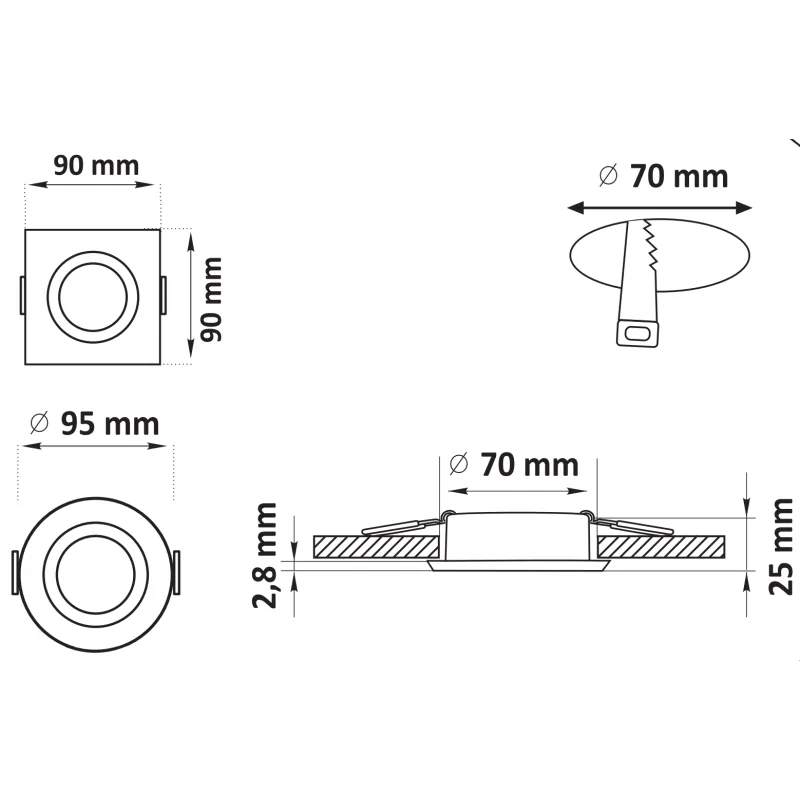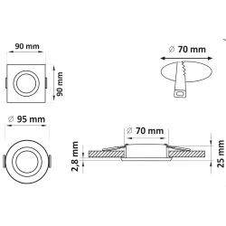 Oczko sufitowe podtynkowe firmy POLUX to nowoczesny i popularny sposób oświetlenia pomieszczeń. Kwadratowa ruchoma oprawa punktowa przystosowana jest do źródła światła z gwintem MR16- brak w zestawie. Oprawa posiada funkcję regulacji kierunku światła -pod kątem max. 15 stopni. Oprawa jest niewielkich wymiarów, dzięki czemu zastosowanie jej w większej ilości w jednym pomieszczeniu daje niesamowity efekt świetlny. Obudowa prezentowanego oczka sufitowego jest w kolorze czarny mat. Wymiary oświetlenia do sufitu podwieszanego to 96x96x25mm. Produkt nie zawiera oprawek do żarówek!