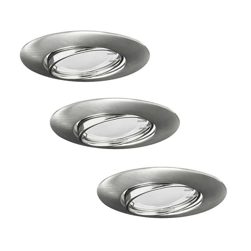 Zestaw trzech oczek sufitowych w kolorze niklowanym z żarówkami i oprawkami w zestawie