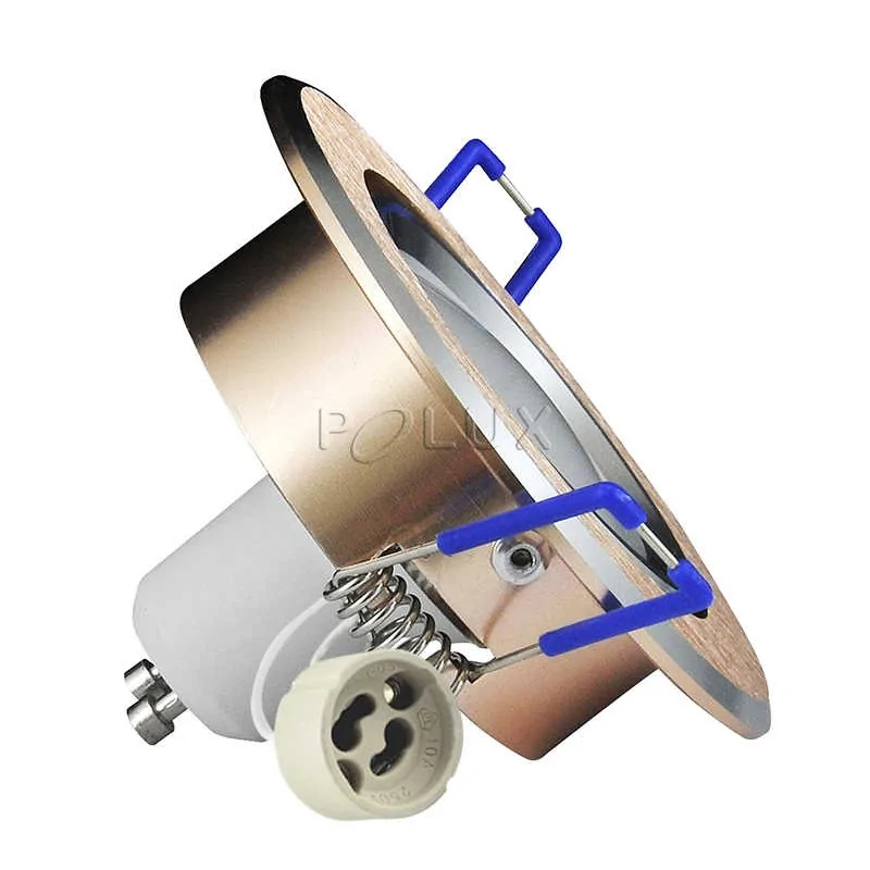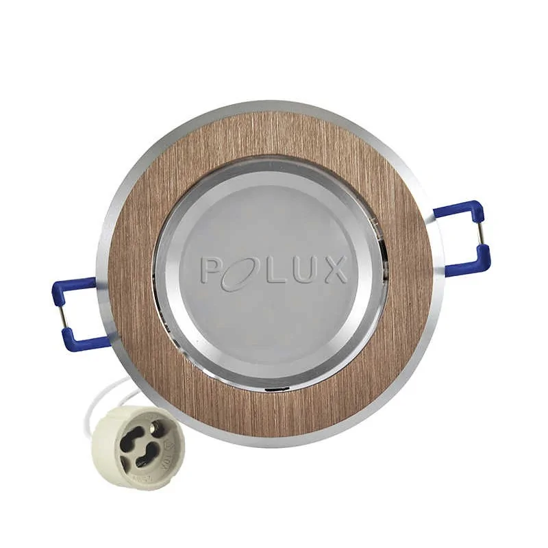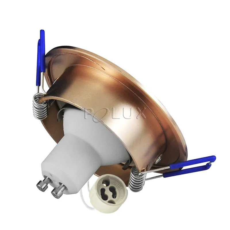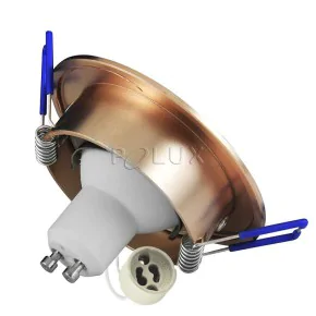 Regulowana oprawa sufitowa wpuszczana OLAL firmy POLUX posiada obudowę w kolorze złotym. Do kompletu dolączono oprawkę GU10 oraz źródło światła led o mocy 3,5W, z ciepłą białą barwą światła. Regulacja kąta nachylenia oprawki pozwala na skierowanie światła w dowolny punkt. Proponowanym źródłem światła jest żarówka o maksymalnej mocy 8W led, o klasach energetycznych A++ ,A+ oraz A. Oprawa sufitowa posiada stopień odporności IP20. IOczko sufitowe to doskonałe rozwiązanie do salonu czy łazienki, które pozwala na stworzenie ciekawej kompozycji świetlnej.