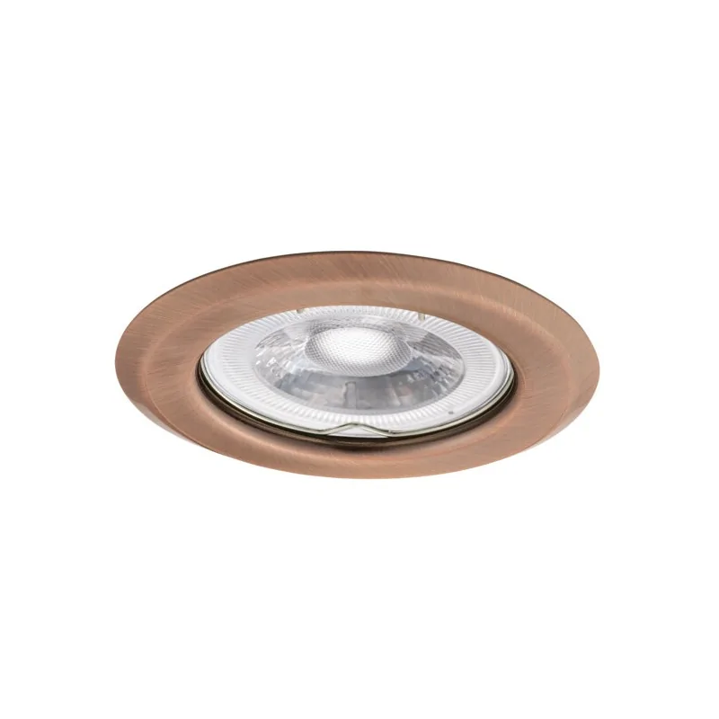 Oczko halogenowe w miedzianym kolorze z serii ARGUS CT-2114-AN to element oświetleniowy wykonany z blachy stalowej. Punktowa oprawa do sufitu podwieszanego przeznaczona jest do użytku wewnętrznego. Pierścień sufitowy o barwie miedzi to nieszablonowy akcent, który może znaleźć zastosowanie na hotelowych korytarzach, w kuchniach lub innych pomieszczeniach Twojego domu. Punktowa oprawa o okrągłej budowie może pracować z oświetleniem LED i energooszczędnym o mocy nieprzekraczającej 10 W. Oprawy mogą pełnić rolę oświetlenia centralnego, jeśli umieścimy je równomiernie na całym suficie podwieszanym lub jako wąskie źródło światła np. umieszczone nad lustrem łazienkowym lub stolikiem do nauki. Produkt sprzedawany bez źródła światła.