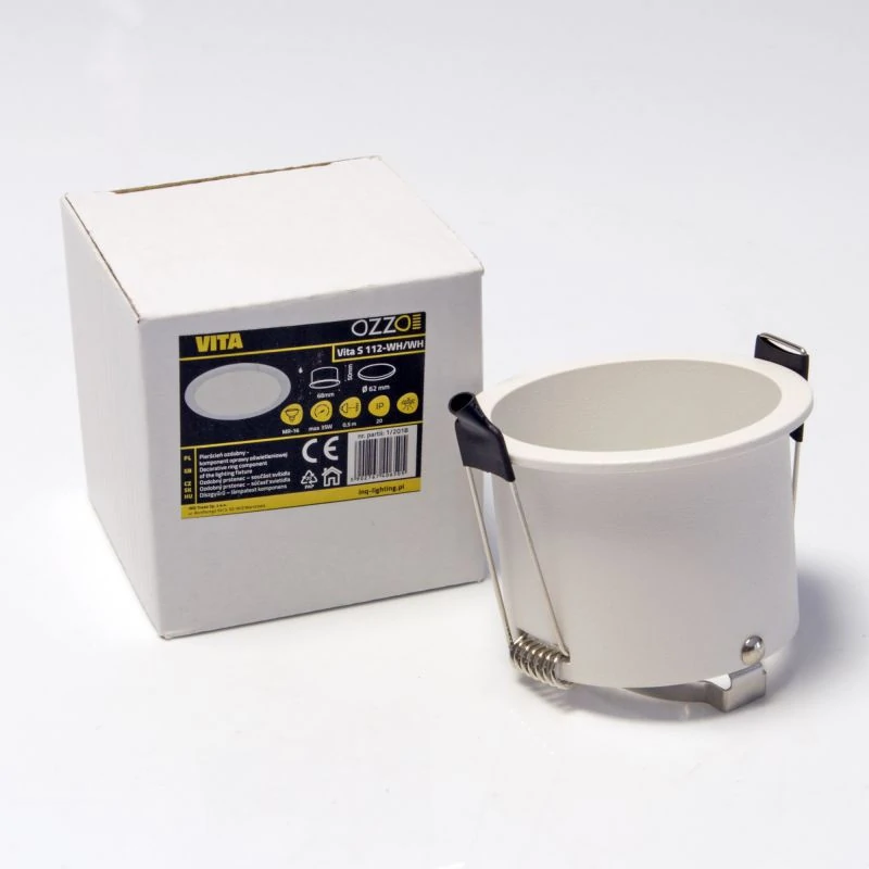 Okrągła oprawa halogenowa sufitowa VITA S 112-WH/WH firmy OZZO jest wykonana z aluminium i jest w kolorze białym. Oprawa oświetleniowa idealnie sprawdzi się w nowoczesnych wnętrzach, którym nada przyjemnego charakteru i będzie stanowić dekoracyjny element pomieszczenia. Sufitowa oprawa ma niewielkie wymiary takie jak: wysokość- 50 mm, szerokość- 68 mm, średnica otworu montażowego- 62 mm. Oświetleniowa oprawa sufitowa firmy OZZO jest dostosowana do źródła światła o maksymalnej mocy 35W (brak źródła światła w zestawie).