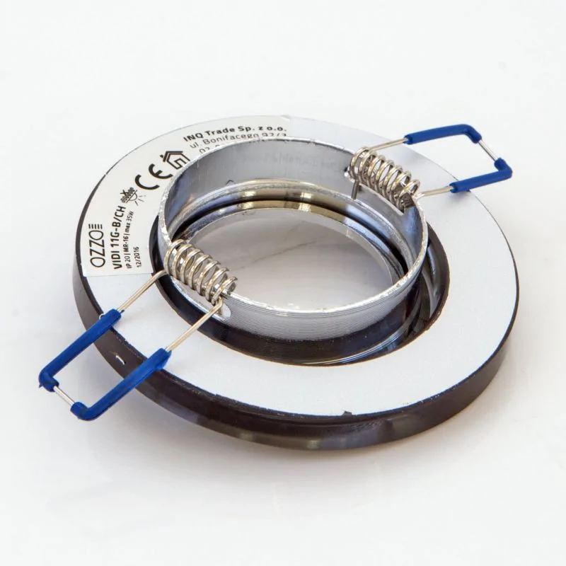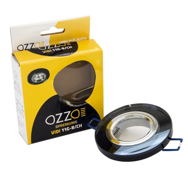 Oprawa sufitowa firmy OZZO to niezwykle nowoczesne i eleganckie oczko sufitowe w kolorze czarnym. Oprawa sufitowa swoje zastosowanie znajdzie w sypialni, korytarzu, kuchni czy salonie tworząc spektakularny efekt na suficie. Oprawa sufitowa halogenowa nie posiada w zestawie gniazda ani źródła światła, dlatego każdy może je wybrać w zależności od swoich upodobań pod warunkiem, że nie będzie ono przekraczało maksymalnej, dopuszczalnej mocy równej 35W.