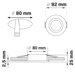 - typ: oprawa sufitowa, oczko sufitowe stałe