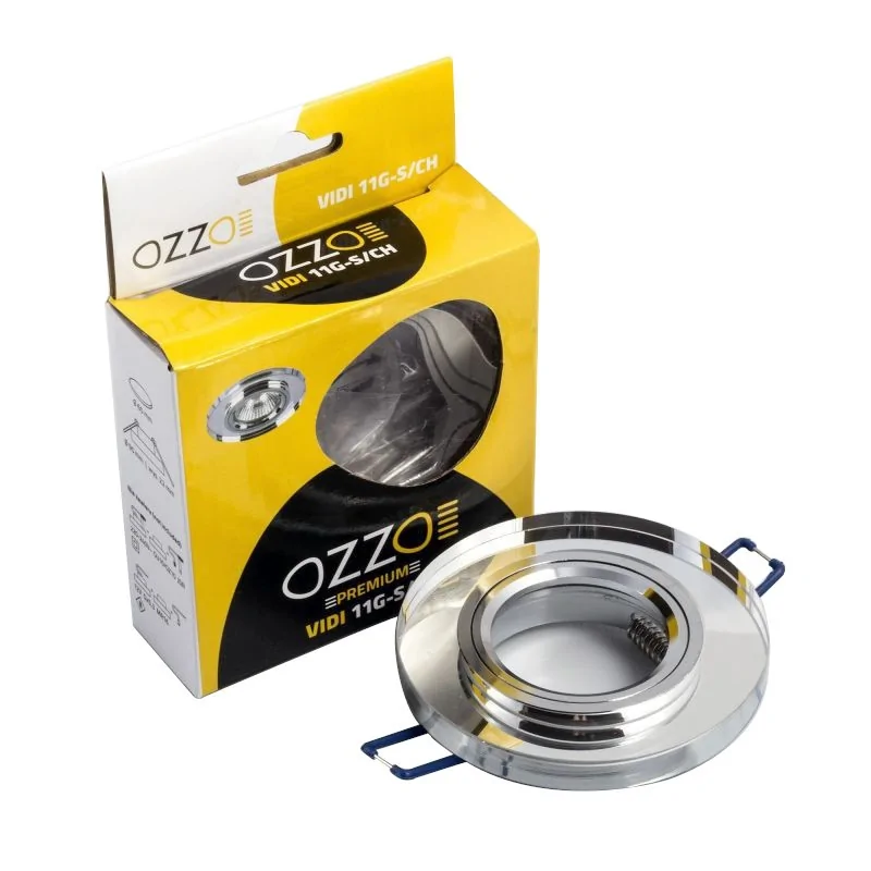 Oczko sufitowe o bardzo dekoracyjnym okrągłym kształcie i srebrnym kolorze, sprawdzi się w pomieszczeniach kuchennych, korytarzach i salonach. Produkt marki OZZO, to świetlny element dekoracyjny ze szkła i chromu. Oprawa halogenowa VIDI jest uniwersalna, pasuje do pomieszczeń o nowoczesnym designie, jest przystosowana do punktowego źródła światła np. nad barkiem czy blatem kuchennym. Element VIDI 11G-S/CH wykonany jest z niezwykłą dbałością o precyzję. Oprawa sufitowa nie zawiera gniazda oraz źródła światła w komplecie. Idealna jako oświetlenie do sufitów podwieszanych.