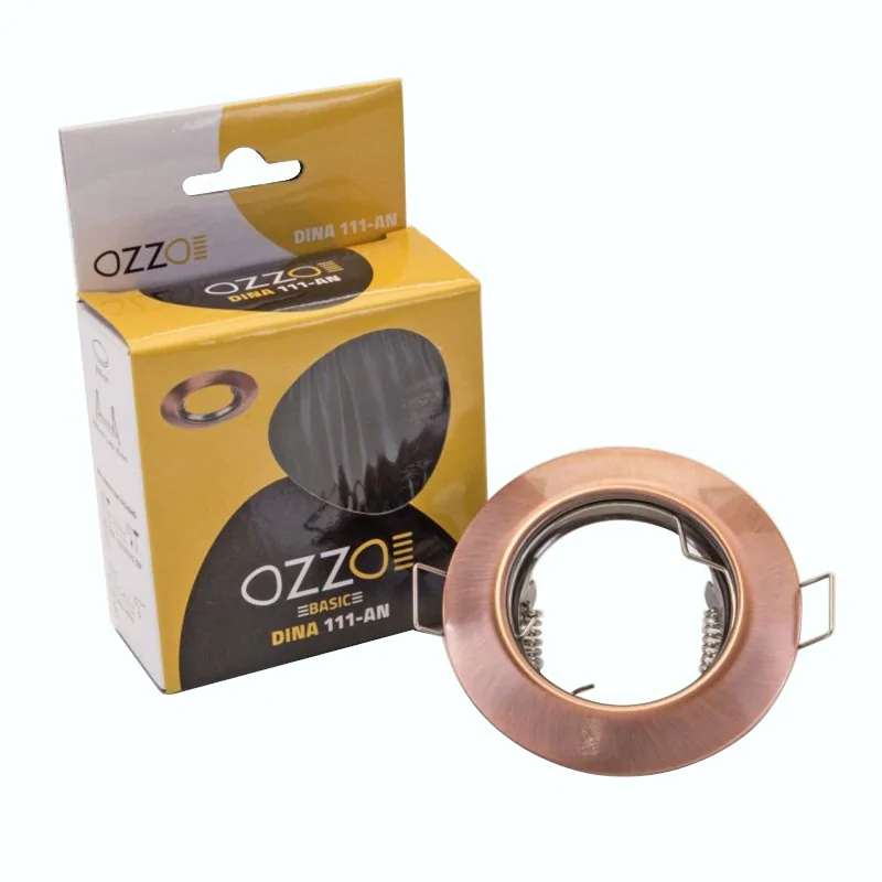 Stała miedziana oprawa sufitowa okrągła DINA 11-AN OZZO posiada ciekawą barwę, która wprowadzi do każdego wnętrza przyjemny charakter. Oprawa sufitowa jest niewielkich wymiarów i w okrągłym kształcie, dzięki czemu elegancko prezentuje się w każdym pomieszczeniu. Stała oprawa oświetleniowa nie posiada w komplecie źródła światła. Oprawa sufitowa działa z maksymalną mocą 35W posiada źródło zasilania MR16. Oświetleniowa oprawa firmy OZZO jest o stopniu odporności IP20 i jest wykonana z trwałego materiału.