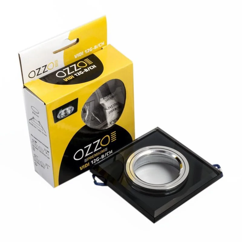 Oprawa sufitowa marki OZZO, to świetlny element dekoracyjny z przyciemnianego szkła i chromu. Oprawa sufitowa VIDI ma kwadratowy kształt i pasuje do każdego wnętrza. Można ją wykorzystać w pomieszczeniach o nowoczesnym designie. Sprawdzi się w pomieszczeniach kuchennych, korytarzach i salonach.Ta uniwersalna oprawa halogenowa czarna pasuje do pomieszczeń w różnych stylach i jest przystosowana do punktowego źródła światła np. nad barkiem czy blatem kuchennym. Element VIDI 12G-B/CH wykonany jest z niezwykłą dbałością o precyzję. Oprawa nie zawiera gniazda oraz źródła światła w komplecie.