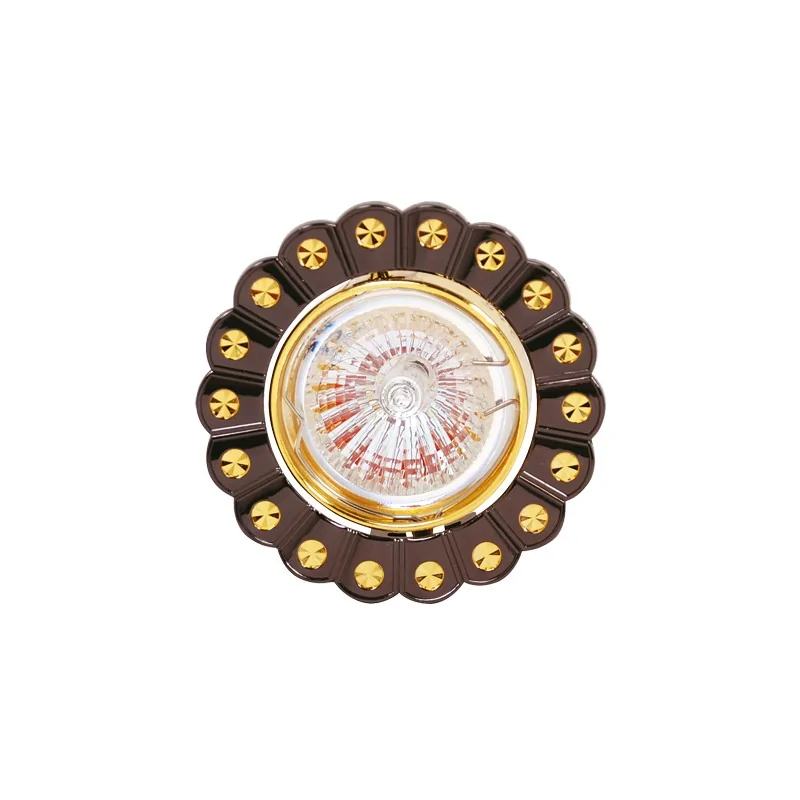 Dekoracyjna oprawa sufitowa PAPATYA to oświetlenie bedące połączeniem czerni i złota wykonane z odlewu stopu aluminium. Oprawa na 12V to idealna forma oświetlenia do eleganckich wnętrz przykuwająca uwagę ciekawym wzorkiem na powierzchni. Oprawa o wymiarach 86x86x25mm przystosowana została do otworów montażowych mierzących 71 mm. Wymienne źródło światła MR16 pozwala na samodzielny dobór barwy oraz mocy emitowanego światła z uwzględnieniem maksymalnej wartości 50 W. To oświetlenie przystosowane do żarówek MR16 z gwintem GU5.3. Prezentowane oprawy przeznaczone są do użytku wewnętrznego i nie zawierają źródła światła w zestawie. Oczko posiada regulację kierunku padania światła oraz ciekawy wzorek na powierzchni. Model występuje również w innych ciekawych wariantach kolorystycznych.