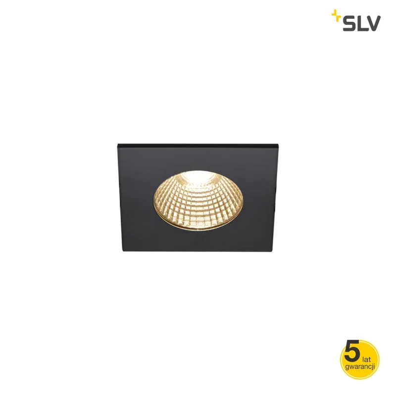 Kwadratowa oprawa wpuszczana czarna o boku 8 cm.