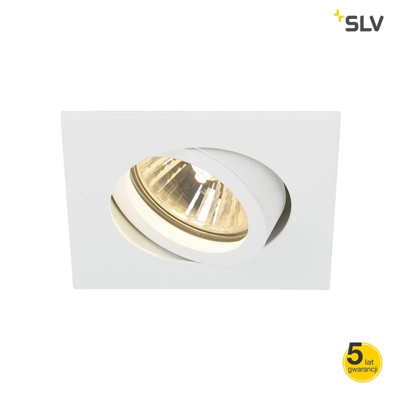 Kwadratowa biała oprawa podtynkowa przystosowana do żarówek GU10.