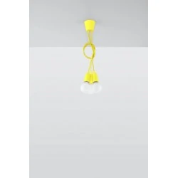 Żołta lampa wisząca DIEGO 3 polskiego producenta SOLLUX to prosta oprawa oświetleniowa z tworzywa sztucznego przeznaczona jest na 3 żarówki E27. Do oprawy pasują żarówki o mocy do 60W każda (15W LED). Brak źródła światła w zestawie. Maksymalna długość oprawy to 90 cm, a średnica podsufitki oprawy to 9cm. Model dostępy w wielu modnych kolorach. Piękna prostota opraw DIEGO to doskonałe oświetlenie pomieszczeń oraz minimalizm w najczystszej postaci. Produkt objęty gwarancją producenta. Produkt dostępny także w wersji na 1 lub 5 żarówek. Wymiary plastikowego klosza to 5x8cm. Zwis w kolorowej tonacji świetnie sprawdzi się jako tanie oświetlenie przedszkoli, sal zabaw czy świetlic. Intensywny źółty kolor przyciąga uwagę.