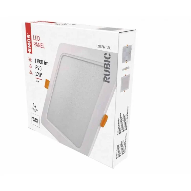 Kwadratowa oprawa sufitowa ZD2442 z linii RUBIC marki EMOS, przystosowana jest do montażu podtynkowego. Wbudowane źródło światła LED, które jest energooszczędne i długotrwałe świeci neutralna barwą światła, o temperaturze barwowej równej 4000K oraz pobiera moc 18W. Oświetlenie posiada uchwyt montażowy, który umożliwi również zainstalowanie jako oprawa wtykowa. Otwór montażowy może wyknocić 14-16 cm. Lampa sufitowa wyposażona jest w technologie backlit z wbudowanym sterownikiem. Żywotność opraw wynosi 25000 godzin. Polecamy zapoznać się z cała serią RUBIC.