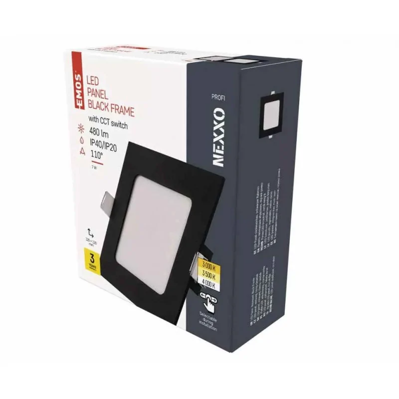 Oświetlenie sufitowe czarne 7W LED 3000K/3500K/4000K kwadrat NEXXO ZD2323 EMOS