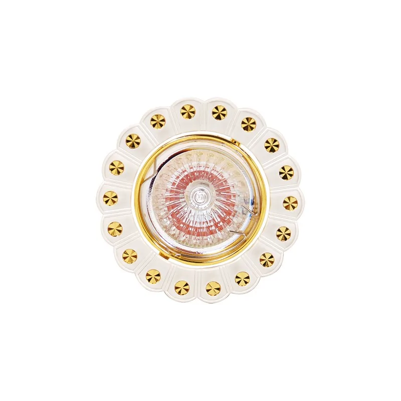 Dekoracyjna oprawa sufitowa PAPATYA to oświetlenie bedące połączeniem srebra i złota wykonane z odlewu stopu aluminium. Oprawa na 12V to idealna forma oświetlenia do eleganckich wnętrz przykuwająca uwagę ciekawym wzorkiem na powierzchni. Oprawa o wymiarach 86x86x25mm przystosowana została do otworów montażowych mierzących 71 mm. Wymienne źródło światła MR16 pozwala na samodzielny dobór barwy oraz mocy emitowanego światła z uwzględnieniem maksymalnej wartości 50 W. To oświetlenie przystosowane do żarówek MR16 z gwintem GU5.3. Prezentowane oprawy przeznaczone są do użytku wewnętrznego i nie zawierają źródła światła w zestawie. Oczko posiada regulację kierunku padania światła oraz ciekawy wzorek na powierzchni. Model występuje również w innych ciekawych wariantach kolorystycznych.