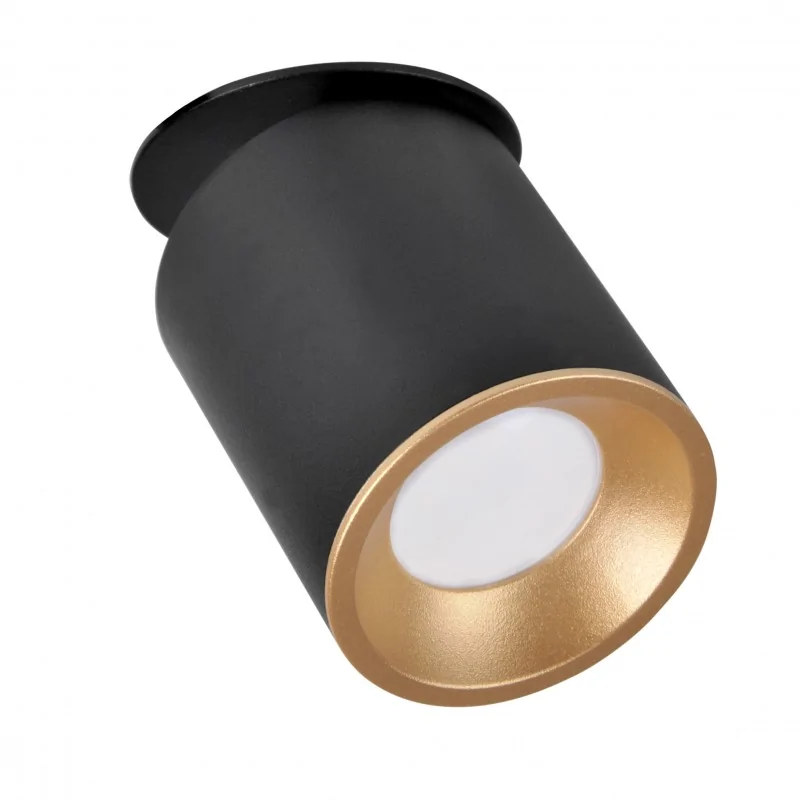 Oprawa sufitowa HARON firmy POLUX to nowoczesne oczko sufitowe, które przeznaczone jest do montażu podtynkowego. Dużą zaletą prezentowanego modelu lampy jest możliwość samodzielnego dobrania żarówki do własnych potrzeb oraz możliwość jego wymiany w każdej chwili. Proponowanym źródłem światła jest żarówka z trzonkiem GU10 o maksymalnej mocy 10W LED. Czarny kolor ze złotym akcentem nadaje oprawie uroku. Oczko sufitowe podtynkowe jest o wymiarach: ø82 x 144mm i ze względu na stopień odporności IP20 może być zastosowania jedynie wewnątrz pomieszczeń.