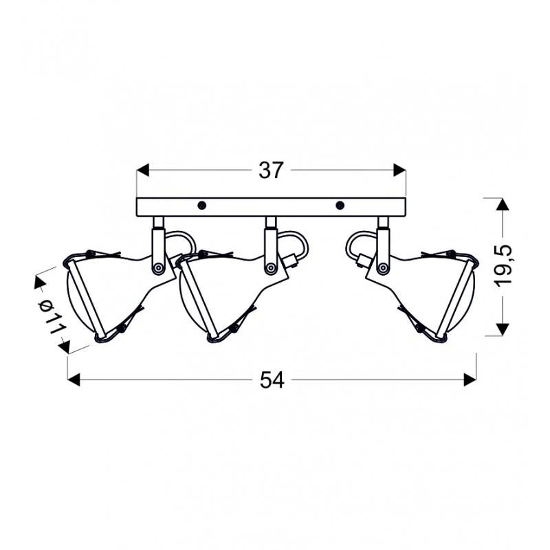 - Typ: oprawa sufitowa, spot oświetleniowy potrójny