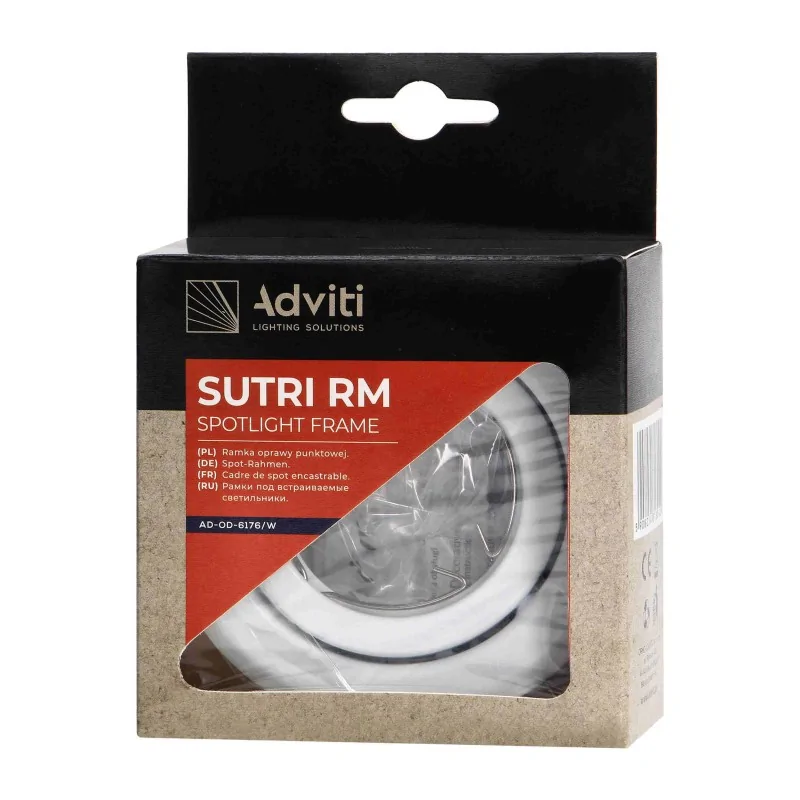 Dekoracyjna, okrągła ramka SUTRI marki ORNO, do oprawy punktowej, którą można podtynkowo zabudować w sufitach podwieszanych typu karton-gips. Jej prosty i minimalistyczny kształt jest odpowiedni do zastosowania w domach, mieszkaniach, hotelach, biurach, sklepach, itp. W ramce możemy zamontować oprawkę na trzonek GU10 lub Gx5,3 (oprawki nie są częścią zestawu) o maksymalnej mocy 50W. Położenie źródła światła może być stałe bądź ruchome, w zależności od modelu ramki. Prezentowana ozdobna ramka jest wykonana ze stali. Produkt dostępny w kolorach: czarny, biały i satynowy.