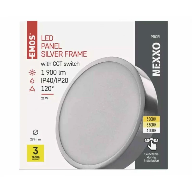 Srebrny panel LED natynkowy okrągły 21W, CCT NEXXO ZM5243 EMOS