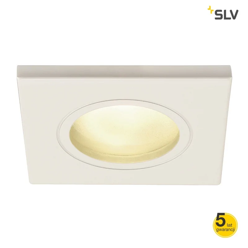 Biała podtynkowa oprawa aluminiowa firmy SPOTLINE posiada wymienne źródło światła w formie żarówki GX5.3. Doskonała, klasyczna estetyka wykonania oraz możliwość doboru barwy oraz mocy emitowanego światła czynią oprawę POLUX doskonałą formą oświetlenia pasującą do różnorodnie zaaranżowanych przestrzeni. Wysoka klasa szczelności IP65 pozwala na stosowanie oprawy w pomieszczeniach o podwyższonym stopniu wilgoci. To doskonała forma oświetlenia do łazienki objęta 5-letnią gwarancją producenta.