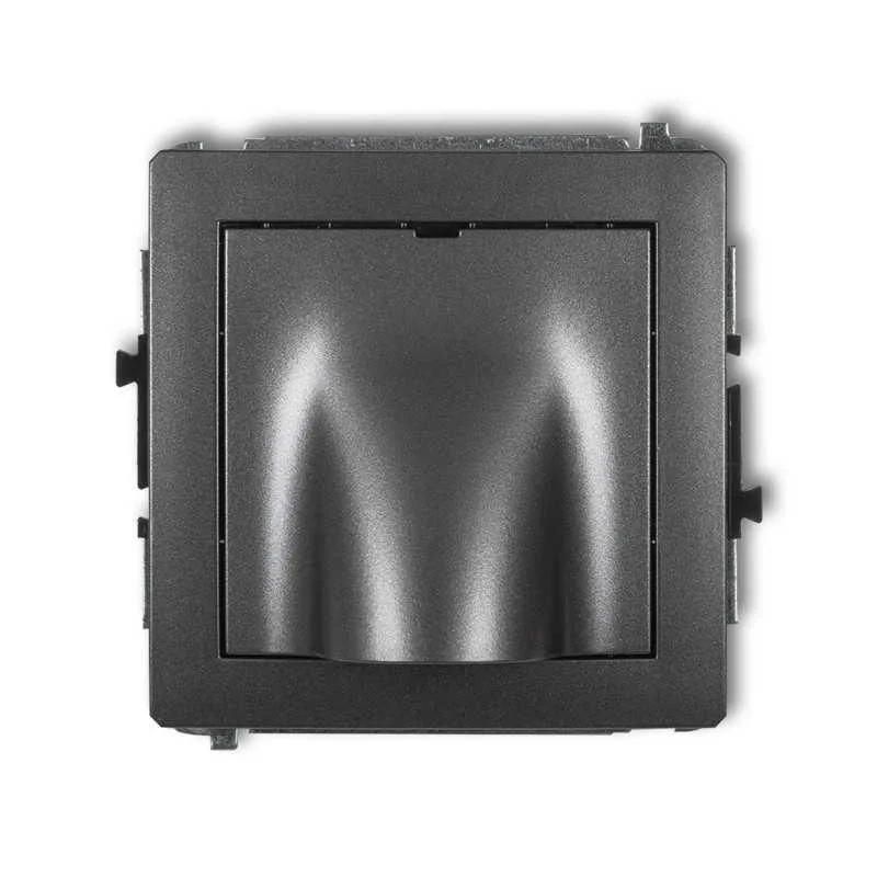 Mechanizm wypustu kablowego w kolorze grafitowym serii DECO firmy KARLIK, przeznaczony do montażu podtynkowego. Wypust kablowy wymaga dokupienia ramki serii DECO firmy KARLIK.