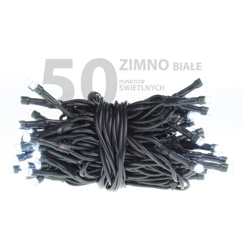 CH/0097 Lampki choinkowe LED z dodatkowym gniazdem LW-LED-50G zimna biała RUM-LUX