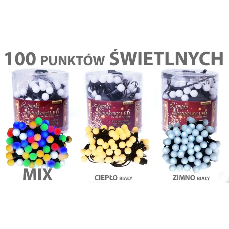 CH/0107 Lampki choinkowe LED kulki mleczne z dodatkowym gniazdem LW-LED-SBALL-100G ciepłe RUM-LUX