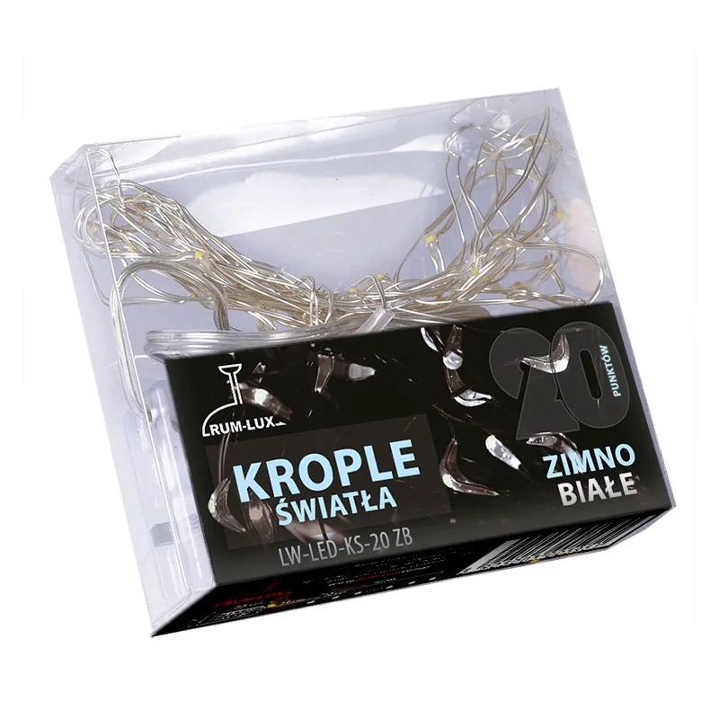 CH/0115 Lampki wewnętrzne LED Krople Światła LW-LED-KS-20 zimna barwa 2xAA RUM-LUX