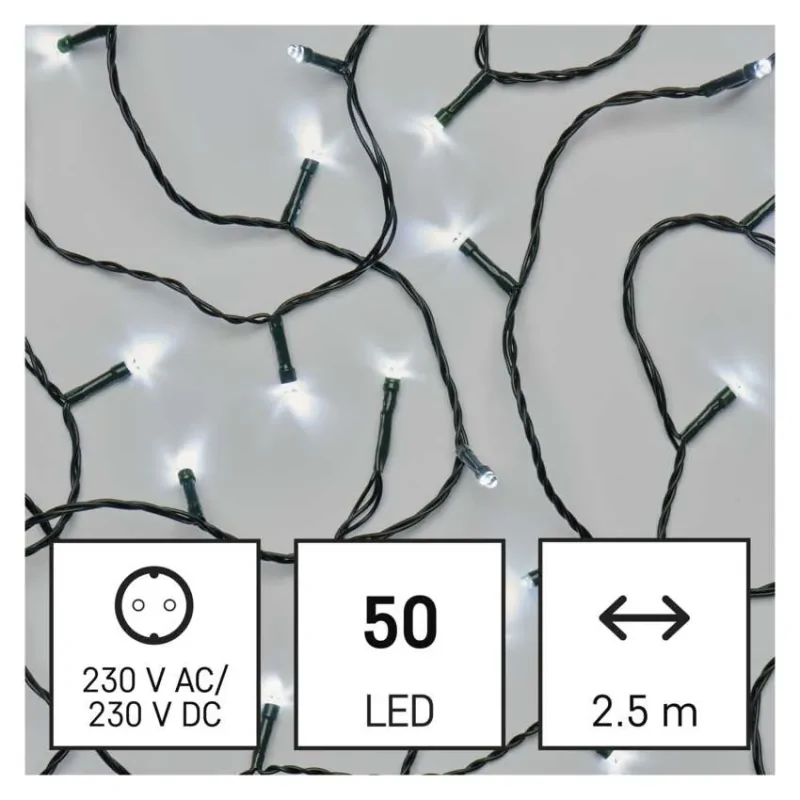 Choinkowe światełka Classic 50xLED 2,5m zimna biel zielony przewód IP20 D4GC01 EMOS