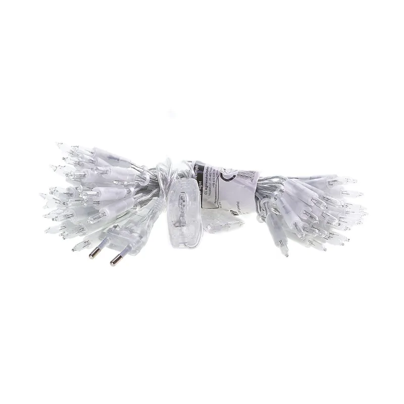 Lampki żarówkowe na przezroczystym przewodzie. 50 punktów świetlnych to idealny pomysł na oświetlenie choinki, girlandy czy okna. Sprawdzi się także jako dekoracja półek czy witryn. Do każdego zestawu dołączone jest 5 szt. zapasowych żaróweczek. Lampki dodatkowo posiadają wyłącznik na przewodzie.