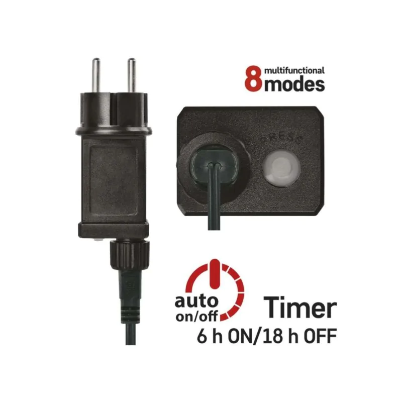Lampki choinkowe EMOS Classic to idealny sposób na stworzenie ciepłej, świątecznej atmosfery zarówno w domu, jak i na zewnątrz. Ich przyjemne, ciepłe światło wprowadza przytulny nastrój, a zielony przewód dyskretnie wtapia się w gałęzie choinki, tworząc naturalny i estetyczny efekt. Oświetlenie oferuje kilka trybów świecenia, dzięki czemu można dopasować wygląd dekoracji do okazji — od delikatnego migotania po stałe, spokojne światło.